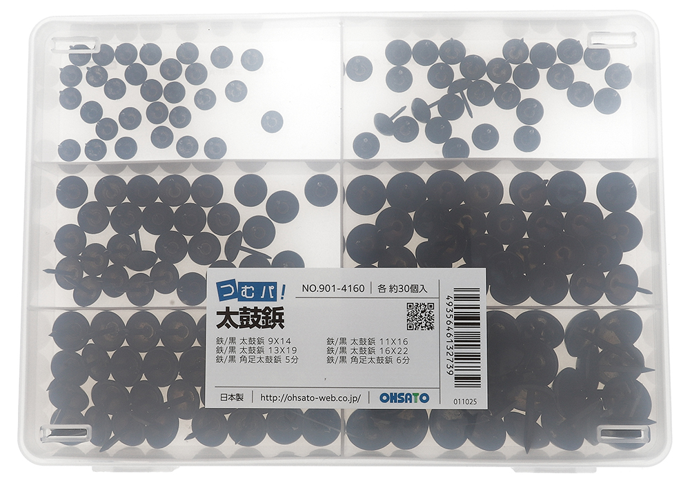 黒色の装飾用鋲です。和太鼓や家具、建具、看板、木工製品などに使用されます。